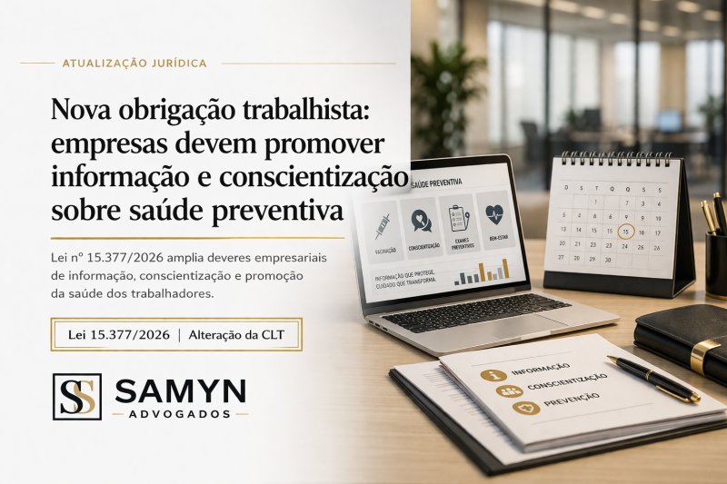 A publicação da Lei nº 15.377, de 2 de abril de 2026, introduz relevante inovação na legislação trabalhista ao inserir, de forma expressa, o dever das empresas de atuarem na promoção da saúde preventiva de seus empregados.